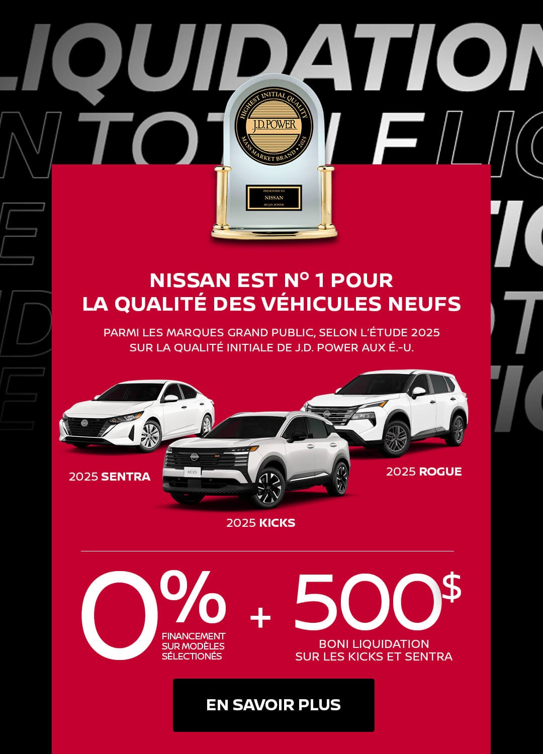Notre concessionnaire Nissan est fier de vous recevoir dans un lieu où l’excellence rencontre la variété. **Des véhicules d’occasion aux dernières innovations de Nissan** en passant par des services d’entretien minutieux, vivez une expérience complète et de qualité chez notre concessionnaire de confiance à Sherbrooke.